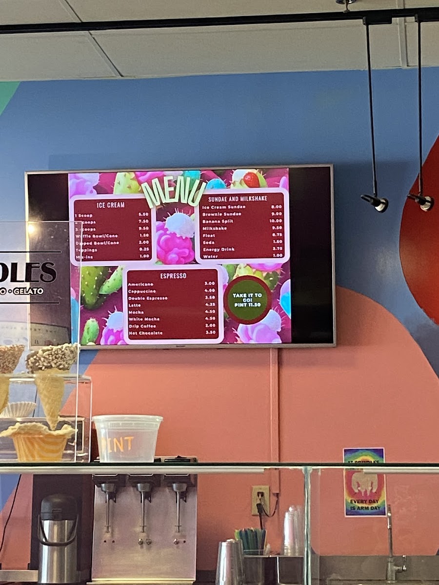 As you step inside, you are immediately enveloped in the irresistible aroma of fresh waffle cones—a perfect prelude to the adventure that awaits you. The shop may be simple in design, but it’s filled with warmth and friendliness, thanks in part to staff like Walter, whose cheerful demeanor has enchanted many visitors. This is not just an ice cream shop; it’s a community hub where smiles and delicious treats come together.